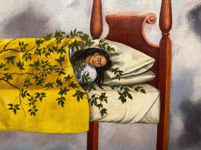El sueño (La cama) auctioned by Sotheby’s, nearly three feet wide, is large in format when compared to her usual output. She painted this self-portrait after a trip to Paris in 1940, a year that marked Frida’s life through physical suffering and the emotional chaos of a divorce. It depicts the artist in a dreamlike state: her body lies on a four-poster bed, above which rests a papier-mâché skeleton. This figure, known in Mexico as a Judas, carries a bouquet of flowers on its chest and a series of firecrackers tied to its legs. According to some scholars, the painting’s symbolic value demonstrates the artist’s iconographic connection to Mexican cultural tradition and to the central themes of her work.